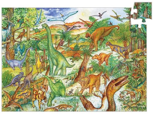Krásne ilustrované puzzle s motívom pravekých obyvateľov planéty Zem. Priložená brožúra s informáciami o dinosauroch je v cudzích jazykoch. Rozmer zloženého puzzle cca 63 x 45 cm