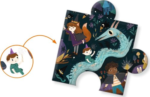 Detské puzzle DJECO Observation spája skladanie so zábavnou hľadacou hrou. Zložte obrázok a zahrajte si postrehovú hru, kto skôr nájde rôzne predmety alebo zvieratká vyobrazené na rámčeku. Súčasťou balenia je plagát vo veľkosti zloženého puzzle slúžiaci ako predloha. Rozmer zloženého puzzle cca 61 x 38 cm