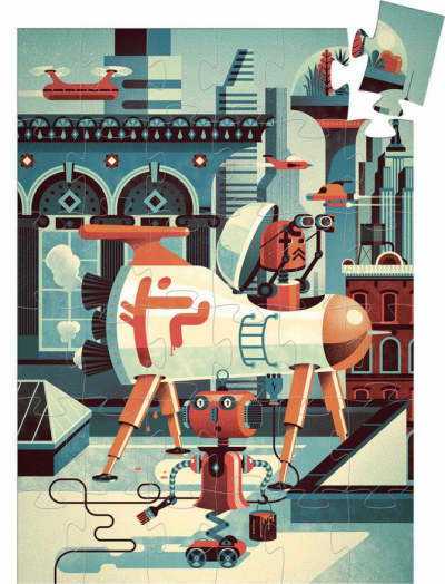 Originálne puzzle v tvare robota skrývajú v 36 dielikoch obrázok robota vo vesmírnom meste. Rozmer zloženého puzzle cca 30 x 42 cm