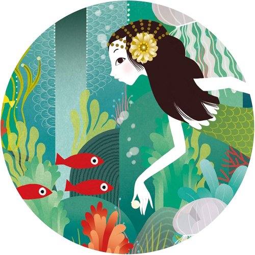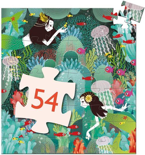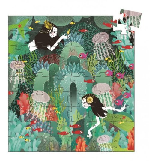 Štvorcové puzzle s motívom podmorského sveta as morskými pannami je balené v zaujímavej krabičke.