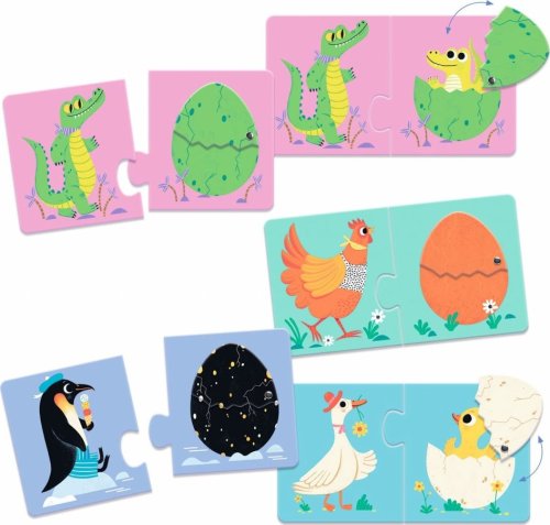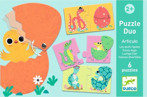 Sada jednoduchých dvojdielnych skladačiek s je určená pre deti, ktoré s puzzle začínajú. Veľké a pevné dieliky s hrúbkou cca 3 mm uľahčujú deťom skladanie. Skladaním puzzle si deti precvičujú predstavivosť, jemnú motoriku, koordináciu oko-ruku, logické myslenie a navyše si užijú srandu.
