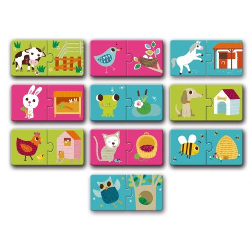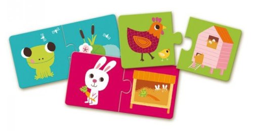 Sada jednoduchých dvojdielnych skladačiek s je určená pre deti, ktoré s puzzle začínajú. Veľké a pevné dieliky s hrúbkou cca 3 mm uľahčujú deťom skladanie. Skladaním puzzle si deti precvičujú predstavivosť, jemnú motoriku, koordináciu oko-ruku, logické myslenie a navyše si užijú srandu. Vhodné pre deti od 3 rokov.