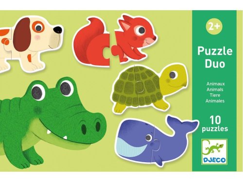 desať dvojdielnych obrysových skladačiek s motívom rôznych zvieratiek pre najmenšie deti veľké dieliky každé puzzle zvieratko sa skladá z dvoch dielikov balených v kartónovej krabičke s uškom na prenášanie ekologické balenie šetrné k životnému prostrediu