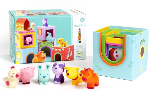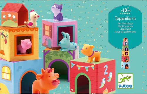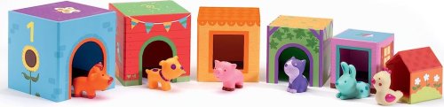 Skladacie kocky DJECO so zvieratkami a ich príbytky ponúka mnoho spôsobov hrania. Z kociek možno stavať vežu alebo rad, vkladať ich do seba od najväčšieho k najmenšiemu a naopak.