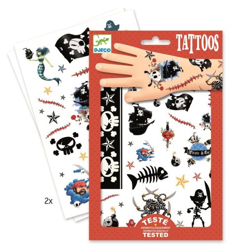 Tetovanie s pirátskymi motívmi pre malých aj veľkých. Balenie obsahuje 2 archy tetovačiek.