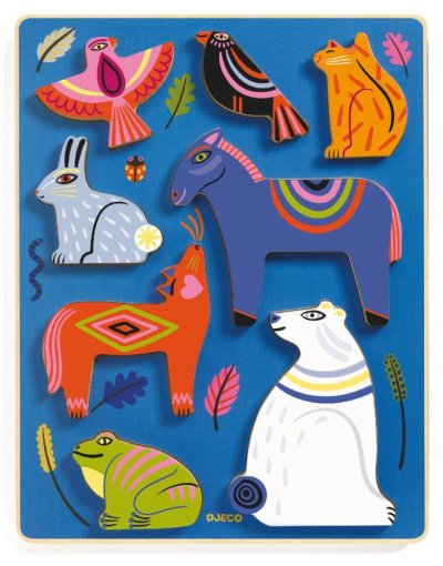 Drevené vkladacie puzzle s motívom zvieratiek. Skladaním si deti precvičujú predstavivosť, jemnú motoriku, koordináciu oko-ruku, logické myslenie a navyše si užijú srandu.