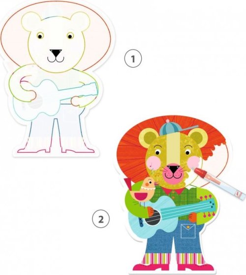deti pomocou ceruzky naplnené vodou vyfarbujú biele miesta zvieratiek a objavujú, čo sa pod nimi skrýva naraz sa objavujú vzory a menia sa farby - je to ako kúzlo akonáhle stránky uschnú, zábava začína znovu sada obsahuje: 4 obrázky, magickú ceruzku, podložku všetko zabalené v praktickom obale so zapínaním, aby sa aj na cestách nič nestratilo