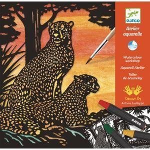 Kreatívna sada pre deti od 6 rokov so 4 obrázkami, ktoré spája tému divokých zvierat a techniku akvarelového pozadia V sade nájdu deti 4 šablóny s leopardmi, krokodílom, tigrom a tukanom Deti si pomocou akvarelových pasteliek vytvoria pozadie s farebnými prechodmi Na pozadí potom položí vyrezávanú so zvieratamiTáto sada obsahuje 4 vyrezávané karty s ilustráciou zvierat, 12 akvarelových ceruziek, štetec a 1 návod krok za krokom Rozmery darčekovej krabice sú 23,5 x 23 x 4 cm