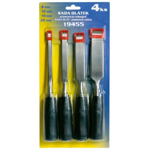 dláta sada - 4 ks rozmery dlát: 8; 12; 19; 25 mm úderová plocha s kovovým krúžkom, ktorá zvyšuje jej pevnosť plastová ergonomicky tvarovaná rukoväť úderová plocha s kovovým krúžkom, ktorý zvyšuje…