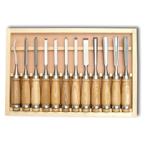 Sada rezbárskych dlát obsahuje 12 ks ( ploché dláto, ploché - prehnuté, rôzne tvary šikmého dláta a rôzne druhy drážkovacích dlát)