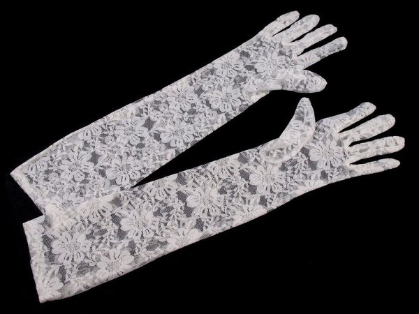 Spoločenské rukavice o dĺžke 43 cm s krajkovým vzorom. Na dotyk sú veľmi príjemné, sú elastické a ľahko sa prispôsobia ruky svojej majiteľky. Dlhé rukavice navyše zoštíhľujú postavu. Budete glamour a užijete si kúzelné večery.
