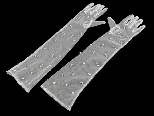 Dlhé tylové rukavice sú veľmi elegantné, využijete ich na ples, tematické večierky či formálne udalosti, kde je vyžadovaný vyšší dress code. Hornú stranu majú ozdobenú noblesnými perlami. Dokonale priľnú okolo ruky, majú univerzálnu veľkosť, ktorá padne každej žene či dievčaťu. Ich design je navrhnutý tak, aby predĺžil elegantne líniu paží a pridal štýl každej spoločenskej príležitosti. Skvele doplnia aj maškarný kostým alebo štýlovú retro párty, sú perfektné na fotenie špeciálnych fotoprojektov, kde je vyžadovaný výrazný módny doplnok. Perly sú pevne prinitované.