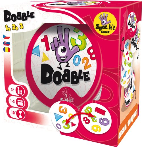 Dobble 1-2-3 je variant obľúbenej hry Dobble určený predovšetkým pre menšie deti, ktorá pri hraní prináša deťom pozvoľný úvod do poznávania tvarov, čísel a farieb. Hráči tu hľadajú dve rovnaké čísla alebo tvary na kartách pri rôznych verziách hry (v pravidlách je popísané celkom 5 hier). Super sú okrúhle karty aj jednoduché pravidlá vysvetlené doslova za pár sekúnd. Plechová krabička zaručuje bezpečie kariet a jednoducho umožňuje mať hru vždy pri sebe. Vyskúšajte aj Vy postrehový fenomén Dobble a určite budete prekvapení, ako aj tak jednoduchá hra môže byť zábavná a náučná! Rýchlosť, postreh, reflexy! Dobble 1-2-3, to je 31 rôznych symbolov, 30 kariet, 6 symbolov na karte a každé dve karty spolu majú spoločný len jeden symbol!