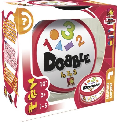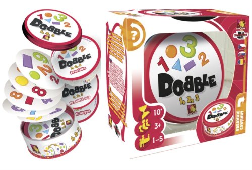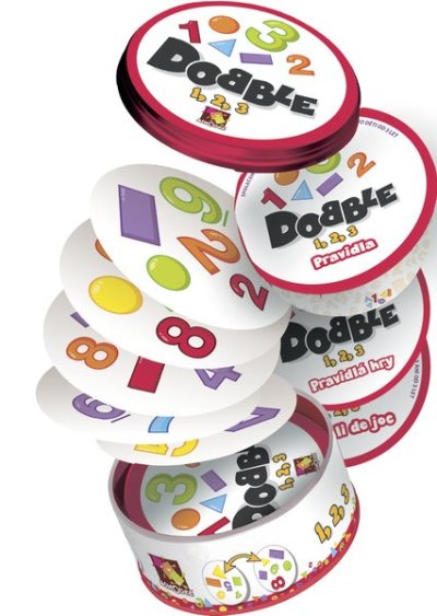 Rýchlosť, postreh, reflexy! Dobble 1-2-3 to je 30 rôznych kariet, z ktorých každé dve spolu majú spoločný iba jeden geometrický tvar alebo číslo- Ak chceš vyhrať, musíš ho nájsť skôr nie ostatné.