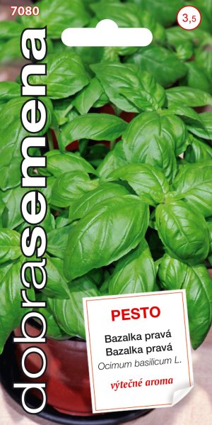 PESTO - výrazne aromatická bazalka, výborná na prípravu autentickej pasty pesto, do zeleninových šalátov i omáčok. Pevná, dobre vetvená rastlina s listom typu "genovese" dorastá do výšky 45 cm. Má výborný zdravotný stav. Kvety sú dvojfarebné, dekoratívne.
