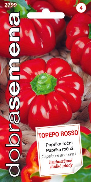 TOPEPO ROSSO - tradičná talianska odroda "rajčinovej papriky" s hrubou, sladkou a veľmi chutnou stenou plodu. Vhodná pre priamu konzumáciu, plnenie aj sterilizáciu. Najlepšie sa jej darí na záhrevnej, plne oslnenej lokalite alebo v krytých priestoroch. Na klíčenie je dôležitá stabilná teplota 20-24 stupňov celzia.