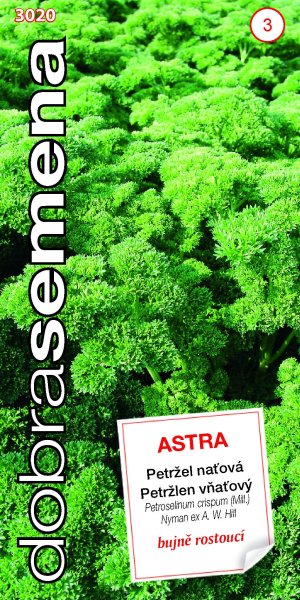 ASTRA - silne kučeravý, výnosný listový petržlen pre celoročný zber vňate. Bohato delené listy sú tmavo zelené, hodia sa na priamy konzum, sušenie aj mrazenie. Vňať po zrezaní intenzívne obrastá a zber je možné po 8-10 týždňoch niekoľkokrát opakovať. Vysievať môžete celoročne, v letných mesiacoch je nutné zabezpečiť dostatok vlahy na vzídenie. Vegetačná doba z jarných a letných výsevov je 80-90 dní, z jesenných 150-180 dní.