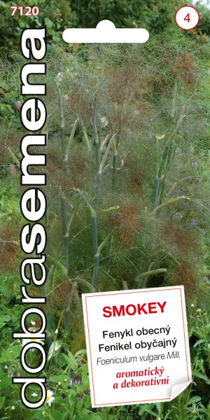SMOKEY ČERVENOLISTÝ - dekoratívny fenikel pestovaný pre aromatické listy aj semená. 100 -120 cm vysoká rastlina nesie bronzovo až bordovo zafarbené listy. Aromatické listy sú výborné do šalátov, k rybám, mäsám a do dresingov.