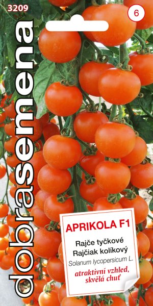 APRIKOLA F1 - skorá hybridná odroda tyčkového cherry rajčiaka s atraktívnymi oranžovými plodmi výrazne sladkastou chuťou a príjemnou konzistenciou. Na prevažne jednoduchých vijanoch dozrieva 18-20 plodov s hmotnosťou cca 23 g. Odroda je vhodná na pestovanie v skleníku aj na záhone.