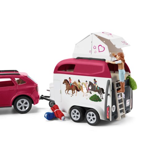 Hannah a jej otec majú skvelé auto s prívesom na koňa od Schleich® Horse Club! Široká škála funkcií ponúka množstvo možností hrania.