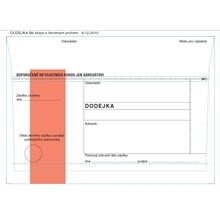 Dodajky vo formáte B6 s červeným pruhom (bez poučenia) Samoprepisovacie prevedenie s perforáciou pre ľahšie odtrhnutie chlopne Zadná strana bez textu Lepenie: samolepiace Rozmery: 17,6 x 12,5 cm Gramáž papiera: …