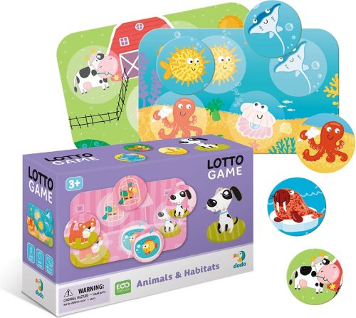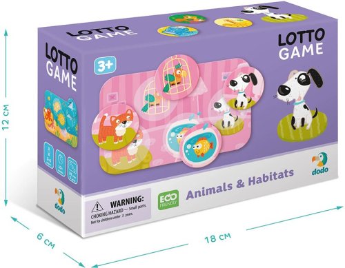 Zábavná detská hra Lotto deťom priblíži svet zvierat. Princíp hry je podobný ako pri klasickom Bingu. Každý hráč si vyžrebuje jednu kartičku a tú sa následne snaží zaplniť zodpovedajúcimi obrázkami. Komu sa podarí svoju kartu zaplniť ako prvý vyhráva. Balenie obsahuje: