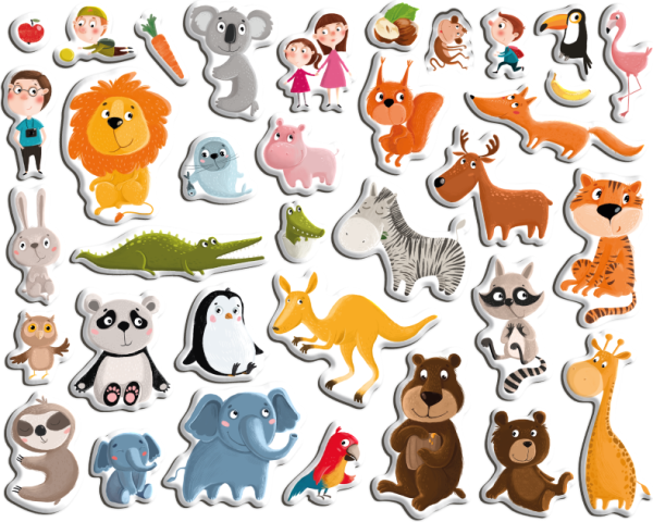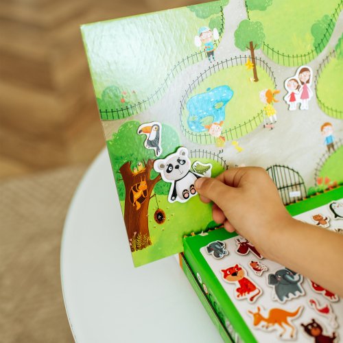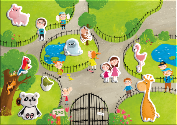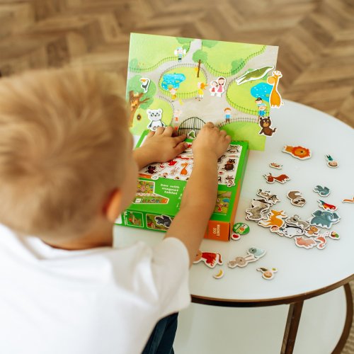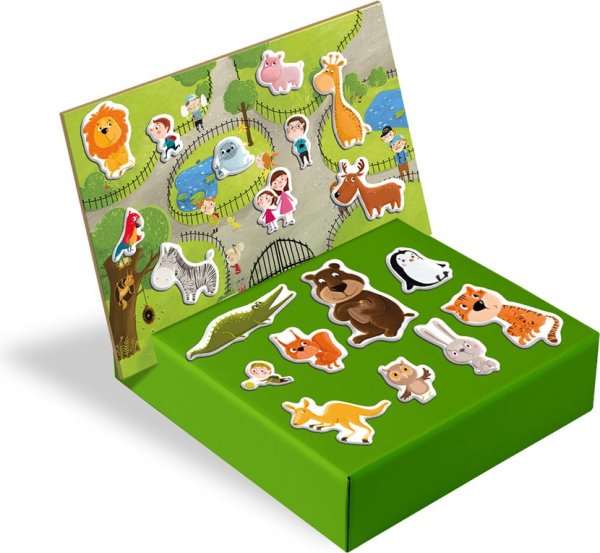 Sada obsahuje magnetickú dosku a 35 magnetických prvkov so zvieratkami zo Zoo. Deti môžu vytvárať vlastné príbehy so zvieratkami v hlavnej úlohe a rozvíjať tak svoju predstavivosť a kreativitu. Magnetická doska je ľahko prenosná, čo umožňuje hru doma aj na cestách. Hra podporuje jemnú motoriku a rozvoj jazykových zručností. Krabička slúži ako stojan pre podkladovú magnetickú hernú dosku.