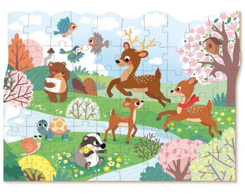 Puzzle z kolekcie obrázkov Ročné obdobie od výrobcu DODO. Poskladajte si obrázok, ktorý môžete následne doplniť o ďalšie scény so zvieratkami počas celého roka. V tejto farebnej sérii nájdete scény jarného prebudenia, slnečných dní, jesenného zberu a zimných radovánok.