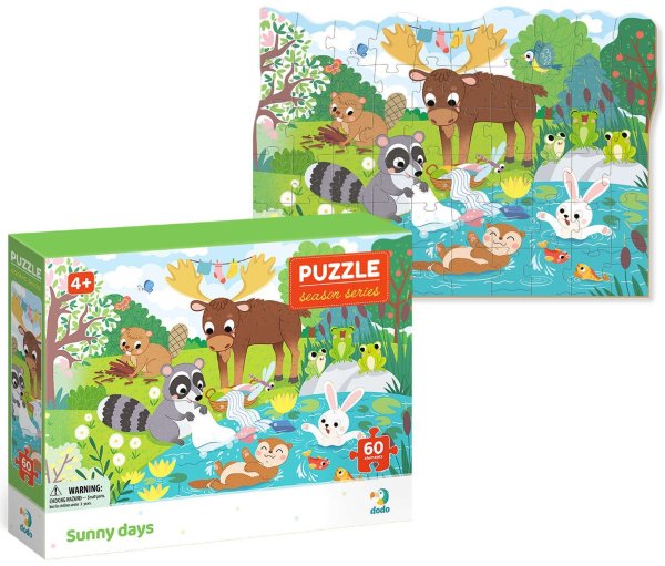 Puzzle z kolekcie obrázkov Ročné obdobie od výrobcu DODO. Poskladajte si obrázok, ktorý môžete následne doplniť o ďalšie scény so zvieratkami počas celého roka. V tejto farebnej sérii nájdete scény jarného prebudenia, slnečných dní, jesenného zberu a zimných radovánok.