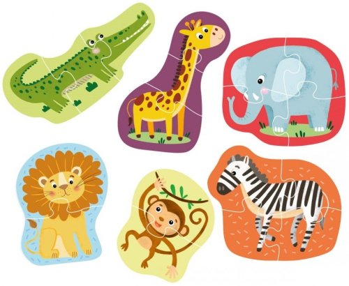 Detské obrysové puzzle DODO s motívom šiestich zvieratiek zo safari.