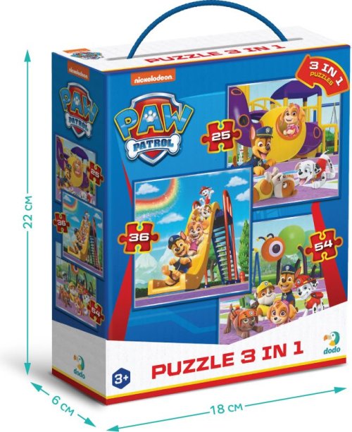 DODO Puzzle Tlapková patrola: Na ihrisku 3v1 (25,36,54 dielikov)