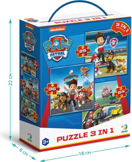 DODO Puzzle Tlapková patrola: Pripravenie do akcie 3v1 (25,36,54 dielikov)