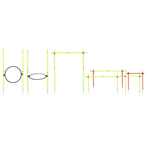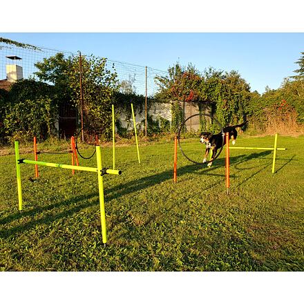 Hľadáte novú pomôcku pre tréning svojho psíka? Už nehľadajte, ponúkame vám perfektné agility sadu Merco Dog Multi! Vďaka tomuto setu vytvoríte prekážkovú dráhu podľa svojich potrieb a fantázie. Sada obsahuje 6 tyčiek s kolíkmi do zeme na upevnenie s celkovou dĺžkou 74 cm, 12 tyčiek s dĺžkou 60 cm, ktoré možno spojiť do 6tich tyčiek o dĺžke 120 cm, 2 kruhy od priemeru 50 cm, 2 kruhy s priemerom 60 cm a spojky pre tyč-tyč a tyč-kruh. Celá sada je vyrobená z tvrdého PVC materiálu a je dodávaná vrátane praktického polyesterového vaku, vďaka ktorému ju ľahko vždy uskladníte a prenesiete na ďalší tréning. - 6x oranžová tyčka + skrutkovacie kolíky do zeme - 12x žltých tyčí navzájom spojiteľné - 2x kruh, priemer 50 cm - 2x kruh, priemer 60 cm - 8x spojka na tyče - 8x spojka na kruh-tyč - materiál: PVC - hmotnosť balenia: cca 5 kg - praktický vak