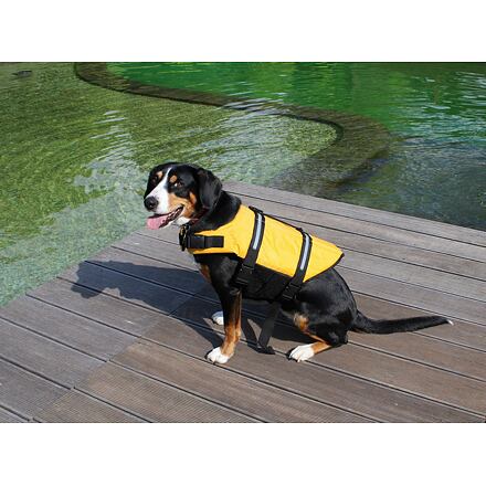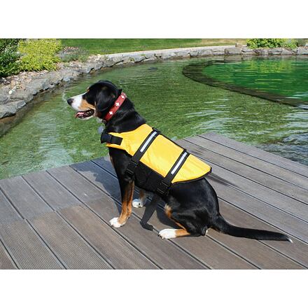Užívať si leto a nemať obavy o svojho štvornohého maznáčika je sen každého starostlivého pána . Dog Swimmer plávacia vesta pre psov vám ušetrí starosť o vášho psíka, keď viete, že nie je práve zdatný plavec. Vesta je vyrobená z 90% PVC a 10% Nylonu. Má jednoduché zapínanie vďaka nastaviteľným trom prackám a suchému zipsu okolo hrude psa. Horná časť vesty je opatrená svetlo-odrážajúcimi prvkami pre lepšiu viditeľnosť v tme, madlom na prenos a plastovým očkom na pripnutie vodidla. S vestou Dog Swimmer bude váš maznáčik ľahko nadnášaný nad vodou a môže si tak lepšie zvyknúť na vodné prostredie. Vestu ponúkame v niekoľkých farebných prevedeniach a veľkostiach. Veľkosť: XS dĺžka chrbta 20 cm obvod krku 25-35 cm obvod hrudníka 30-42 cm vhodné pre domácich miláčikov s hmotnosťou 2,5-4 kg Veľkosť: S dĺžka chrbta 25 cm obvod krku 36-47 cm obvod hrudníka 41-53 cm vhodné pre zvieratá s hmotnosťou 4-7 kg Veľkosť: M dĺžka chrbta 30 cm obvod krku 40-48 cm obvod hrudníka 41-63 cm vhodné pre domácich miláčikov 7-10 kg Veľkosť: L dĺžka chrbta 35 cm obvod krku 42-54 cm obvod hrudníka 50-75 cm vhodné pre domáce zvieratá 10-20 kg Veľkosť: XL dĺžka chrbta 45 cm obvod krku 50-71 cm obvod hrudníka 70-95 cm vhodné pre domáce zvieratá 20-35 kg Veľkosť: XXL dĺžka chrbta 50 cm obvod krku 62 -90 cm obvod hrudníka 88-124 cm vhodné pre domáce zvieratá 35-45 kg