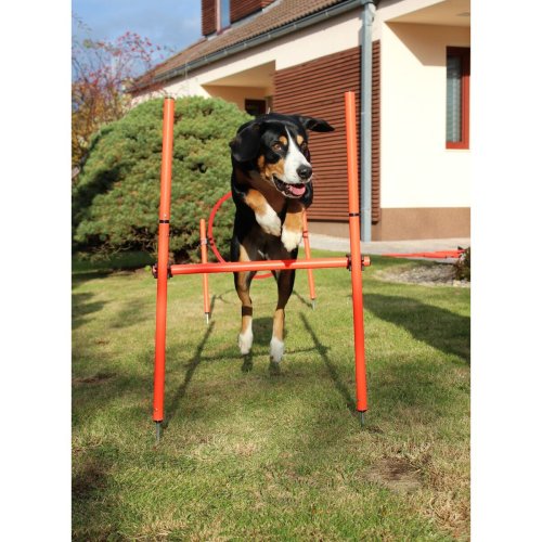 Vytvorte prekážkovú agility dráhu pre vášho štvornohého maznáčika! Dog Trainer agility prekážky pre psov sú vyrobené z PVC a dajú sa medzi sebou prepájať. Spojením tyčí a bodcov postavíte slalom, prekážky na preskoky (výšku nastavíte pomocou spojok) a rôzne druhy prekážkových dráh. Súčasťou balenia je kruh s priemerom 50 cm, ktorým maznáčik môže preskakovať. Veľkou výhodou sú montovacie bodce. Tyče môžete zapichnúť do zeme. Celý set je zabalený v prenosnej taške a malé rozmery zaručia jednoduché prenášanie. Vďaka tomuto setu pripravíte maznáčika na preteky a doprajete mu potrebný pohyb. Balenie obsahuje: 10 ks skladacích tyčí (dĺžka 50 cm) 4 ks pripojovacej tyče (dĺžka 33 cm) 1 ks priečky (dĺžka 55 cm) 10 ks bodcov 4 ks spojok 1 ks kruh (priemer 50 cm) materiál: PVC hmotnosť: 1, 9 kg