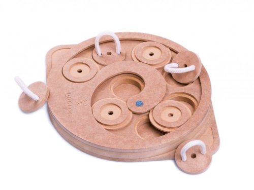 Táto hra síce vyžaduje nutnú dávku sústredenia a psej trpezlivosti, ale až v tej najvyššej obtiažnosti. Do nej Váš chlpáč dospeje zábavným tréningom. Stačia na to len mňaminky a skrutkovač. :) Všetky posuvné kamene je možné po odskrutkovaní stredu vybrať. Vy sami si rozhodnete, akú vysokú obtiažnosť hlavolamu nastavíte. Variabilita je skutočne široká. Od easy až po hard . Keď zvládne aj ten najťažší level, môžete mu hlavolam pripravovať podľa vlastnej potreby.