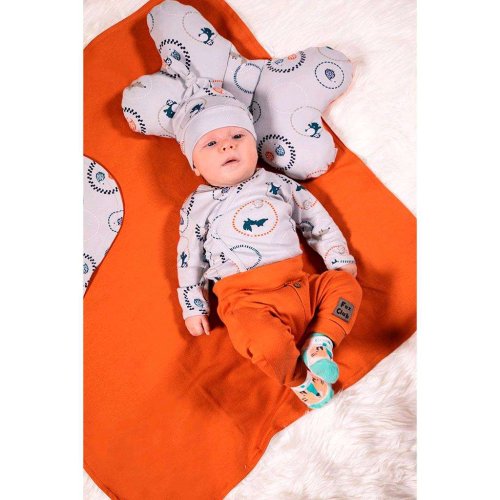 Štýlová čiapočka Nicol Fox Club, s roztomilým uzlíkom v hornej časti. Čiapočku zdobí zaujímavá potlač líšok. Lem je široký a netlačí na hlavičku bábätka. Príjemná na dotyk a krásne sedí na hlavičke. Fox Club je nová dych vyrážajúca kolekcia navrhnutá s ohľadom na potreby našich najmenších. Materiál: 100% bavlna.