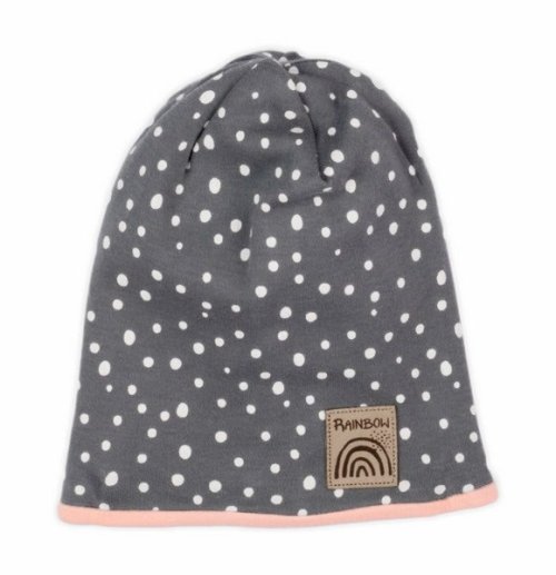 Čiapočka Nicol Rainbow. Čiapočka je celopotlačená bodkami s nášivkou s nápisom RAINBOW. Lem je široký a netlačí na hlavičku bábätka. Rainbow je nová dych vyrážajúca kolekcia navrhnutá s ohľadom na potreby našich najmenších. Zloženie: 100% bavlna.