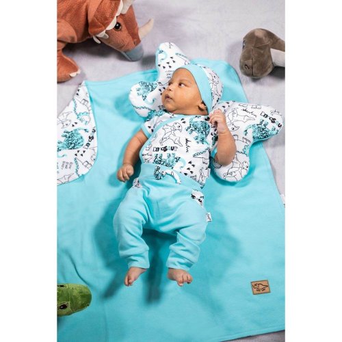 Krásna bavlnená dojčenská čiapočka-šatka Nicol Dinosaur. Čiapočka je ušitá v štýle šatky s pružným lemom s potlačou dinosaurov. Vďaka príjemnému a kvalitnému materiálu sa bábätko bude cítiť veľmi príjemne a pohodlne. Zloženie: 100% bavlna.