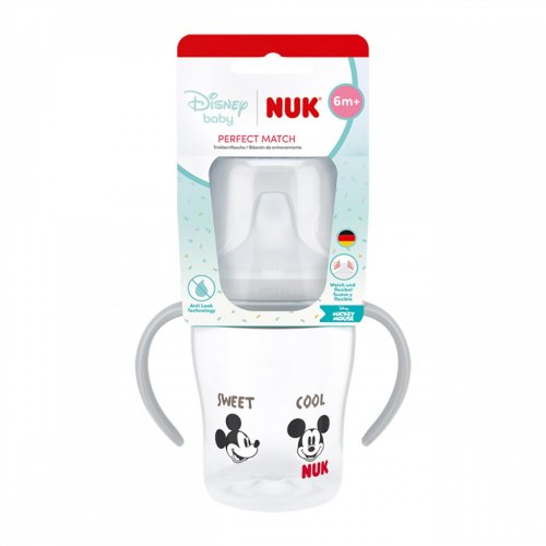 Fľaštička na učenie NUK Perfect Match Disney, Mickey Mouse pomáha prirodzenému prechodu z fľaštičky na hrnček.