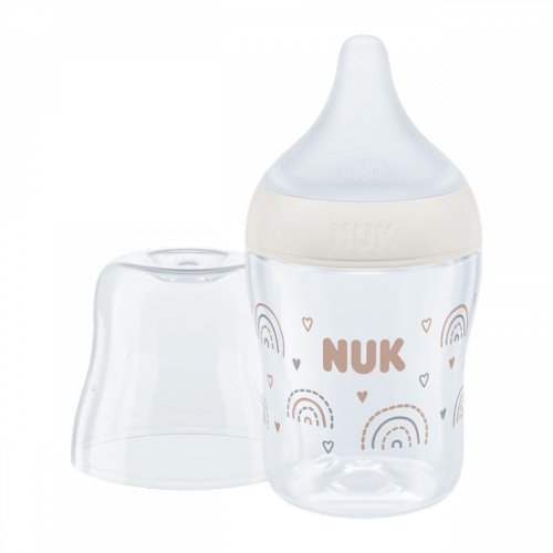 Dojčenská fľaša NUK Perfect Match s kontrolou teploty a mäkkým silikónovým cumlíkom. Špeciálny tvar typický pre cumlíky NUK s ortodontickým antikolikovým cumlíkom je modelovaný podľa materskej bradavky pri dojčení. Ponecháva dostatok priestoru pre prirodzené sacie pohyby jazyka aj čeľuste. Veľká, široká opora pier pri pití pripomína matkinu pokožku. Fľaštička je navrhnutá tak, aby bábätko neprišlo do kontaktu s pevnými plastovými časťami. Vylepšený systém proti prehĺtaniu vzduchu pri pití Anti Colic Air System zaisťuje prirodzený tok mlieka, aby dieťa pilo uvoľnene bez prehĺtania vzduchu. Hladko sa zužujúci tvar s antikolikovou funkciou pre plynulý a nerušený prietok pitia, veľkosť S (od narodenia, pre materské mlieko, čaj alebo vodu). Dojčenské fľaše sú teraz vybavené novou NUK kontrolkou teploty a pomáhajú tak zabrániť tomu, aby vaše dieťa pilo príliš horúci príkrm. Kontrolka vyzerá ako teplomer, je umiestnená medzi ryskami a teplota obsahu fľaše zmení jej farbu. Pokiaľ je príkrm príliš horúci, modrá kontrolka sa zmení na bielu. V ideálnom prípade by mal príkrm mať telesnú teplotu (37 °C), čo zodpovedá modrému zafarbeniu displeja. Vyrobená z vysoko kvalitného nerozbitného plastu polypropylénu a neobsahuje BPA (Bisfenol A). Obsah fľaše 150 ml. Vhodná pre deti od narodenia, S (malý otvor = pre materské mlieko, vodu, čaj). Klinicky testované.<BR>Charekteristika:<BR>- praktický displej NUK kontroly teploty, ktorý zmení teplotu z modrej (studené) na<BR>bielu (príliš horúce)<BR>- trvalo hygienická fľaša so vzhľadom vysoko kvalitného plastu, príjemná na dotyk<BR>- bez škodlivých látok a zápachu – neobsahuje BPA<BR>- bezpečné uchopenie a stabilita – vďaka jemne vytvarovanej fľaši a širokej základni<BR>- neobmedzený počet kombinácií – je možné kombinovať so všetkým príslušenstvom odsávačiek materského mlieka NUK Perfect Match a NUK Soft&Easy-nekvapkajúce-vďaka viečku fľaša netečie a cumlík je chránená pred znečistením. Dojčenské fľaše sú v súlade s európskou normou EN14350.
