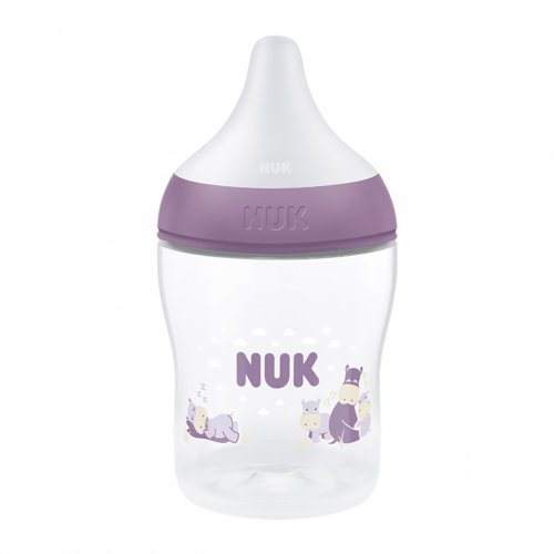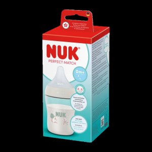 Dojčenská fľaša NUK Perfect Match s kontrolou teploty a mäkkým silikónovým cumlíkom. Špeciálny tvar typický pre cumlíky NUK s ortodontickým antikolikovým cumlíkom je modelovaný podľa materskej bradavky pri dojčení. Ponecháva dostatok priestoru pre prirodzené sacie pohyby jazyka aj čeľuste. Veľká, široká opora pier pri pití pripomína matkinu pokožku. Fľaštička je navrhnutá tak, aby bábätko neprišlo do kontaktu s pevnými plastovými časťami. Vylepšený systém proti prehĺtaniu vzduchu pri pití Anti Colic Air System zaisťuje prirodzený tok mlieka, aby dieťa pilo uvoľnene bez prehĺtania vzduchu. Hladko sa zužujúci tvar s antikolikovou funkciou pre plynulý a nerušený prietok pitia, veľkosť S (od narodenia, pre materské mlieko, čaj alebo vodu). Dojčenské fľaše sú teraz vybavené novou NUK kontrolkou teploty a pomáhajú tak zabrániť tomu, aby vaše dieťa pilo príliš horúci príkrm. Kontrolka vyzerá ako teplomer, je umiestnená medzi ryskami a teplota obsahu fľaše zmení jej farbu. Pokiaľ je príkrm príliš horúci, modrá kontrolka sa zmení na bielu. V ideálnom prípade by mal príkrm mať telesnú teplotu (37 °C), čo zodpovedá modrému zafarbeniu displeja. Vyrobená z vysoko kvalitného nerozbitného plastu polypropylénu a neobsahuje BPA (Bisfenol A). Obsah fľaše 150 ml. Vhodná pre deti od narodenia, S (malý otvor = pre materské mlieko, vodu, čaj). Klinicky testované.<BR>Charekteristika:<BR>- praktický displej NUK kontroly teploty, ktorý zmení teplotu z modrej (studené) na<BR>bielu (príliš horúce)<BR>- trvalo hygienická fľaša so vzhľadom vysoko kvalitného plastu, príjemná na dotyk<BR>- bez škodlivých látok a zápachu – neobsahuje BPA<BR>- bezpečné uchopenie a stabilita – vďaka jemne vytvarovanej fľaši a širokej základni<BR>- neobmedzený počet kombinácií – je možné kombinovať so všetkým príslušenstvom odsávačiek materského mlieka NUK Perfect Match a NUK Soft&Easy-nekvapkajúce-vďaka viečku fľaša netečie a cumlík je chránená pred znečistením. Dojčenské fľaše sú v súlade s európskou normou EN14350.