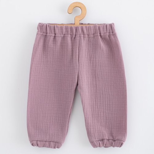 Štýlová a praktická 2-dielna detská súprava českej značky New Baby . Mušelínová súpravička sa skladá z trička s krátkym rukávom a nohavíc. Veľmi praktický set pre deti v jarných aj letných dňoch. Mušelínové tričko je veľmi pohodlné už len tým, že je vyrobené z kvalitnej a priedušnej mušelínovej bavlny so zapínaním na cvočky pod krčkom. Mušelínové nohavice s moderným strihom sú veľmi praktické, v páse a na nohavičkách je gumička, ktorá netlačí.