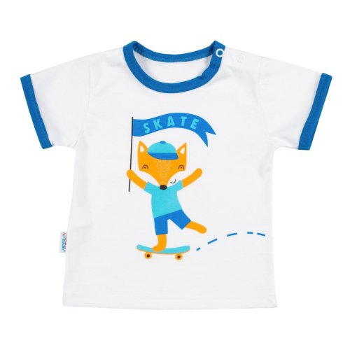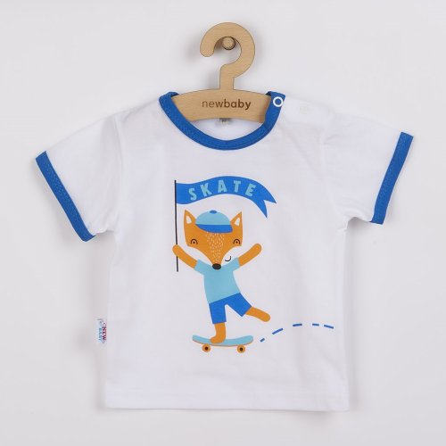 2-dielna bavlnená súpravička českej značky New Baby Liška. Súpravička obsahuje tričko a kraťasky. Tričko s krátkym rukávom s farebným lemovaním okolo krčku a rukávov je zdobené veselým obrázkom líšky a nápisom SKATE. Tričko má zapínanie na ramienku pre ľahké obliekanie. Pohodlné kraťasky sú jednofarebné s gumičkou v páse. Súpravička je vyrobená s ohľadom na potreby malých detí s veľmi príjemnúčkého a jemného materiálu. Zloženie 100% bavlna