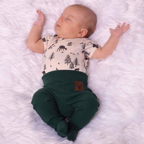 Nápadité bavlnené dojčenské body s krátkym rukávom Nicol Bambi pre bábätká. Body zdobí potlač lesného vzoru. Zapínanie na cvočky na ramienku a medzi nožičkami uľahčuje obliekanie a prebaľovanie. Body je pre bábätká dôležitým kúskom oblečenia. Pri akomkoľvek pohybe sú chrbát bábätka stále prikryté. Bambi je nová dych vyrážajúca kolekcia navrhnutá s ohľadom na potreby našich najmenších. Zloženie: 100% bavlna. OEKO-TEX ŠTANDARD 100.