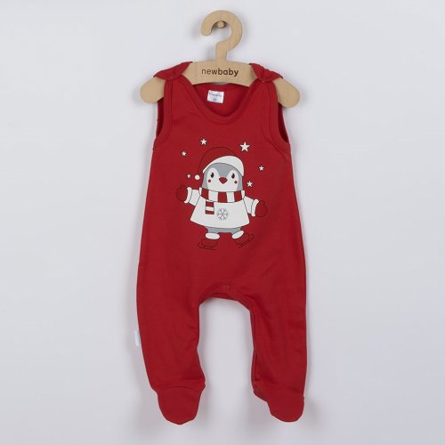 Bavlnené dojčenské dupačky New Baby Winter Penguin. Dupačky sú v krásnej červenej farbe a sú zdobené roztomilým a veselým tučniakom. Zapínanie na cvočky na ramienkach a medzi nožičkami uľahčuje obliekanie a prebaľovanie bábätka. Naše dupačky sú vhodné pre chlapcov aj dievčatká as roztomilým zimným motívom, budú pri vianočnom stromčeku neodolateľné. Zloženie: 100% bavlna.