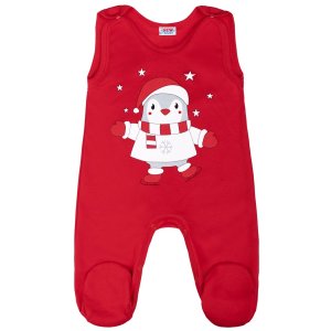 Bavlnené dojčenské dupačky New Baby Winter Penguin. Dupačky sú v krásnej červenej farbe a sú zdobené roztomilým a veselým tučniakom. Zapínanie na cvočky na ramienkach a medzi nožičkami uľahčuje obliekanie a prebaľovanie bábätka. Naše dupačky sú vhodné pre chlapcov aj dievčatká as roztomilým zimným motívom, budú pri vianočnom stromčeku neodolateľné. Zloženie: 100% bavlna.