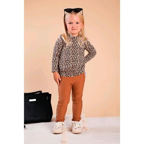 Praktické detské bavlnené legíny Nicol Mia, na bokoch zdobené lemom so vzorom leopardej srsti. Legíny sú veľmi praktickým kúskom oblečenia pre malé deti. V páse majú širšiu gumičku a sú zúžené na nohavičkách. Materiál: 95% bavlna, 5% elastan.
