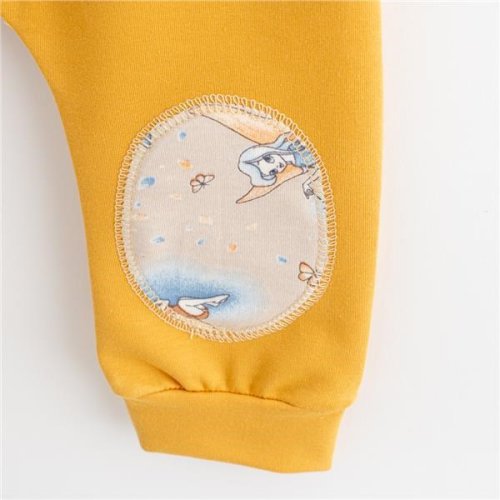 Moderné a praktické tepláčky českej značky New Baby Víla. Tepláčiky majú v páse širší lem s gumičkou, na nohavičkách širší lem a na kolienkach šmrncové záplaty s potlačou víl. Komfort pri nosení zabezpečí kvalitný materiál. Zloženie: 95% bavlna, 5% elastan. Do kolekcie Víla patrí: tričko s krátkym rukávom, body s dlhým rukávom, polodupačky, tepláčiky, čiapočka a kraťasy.