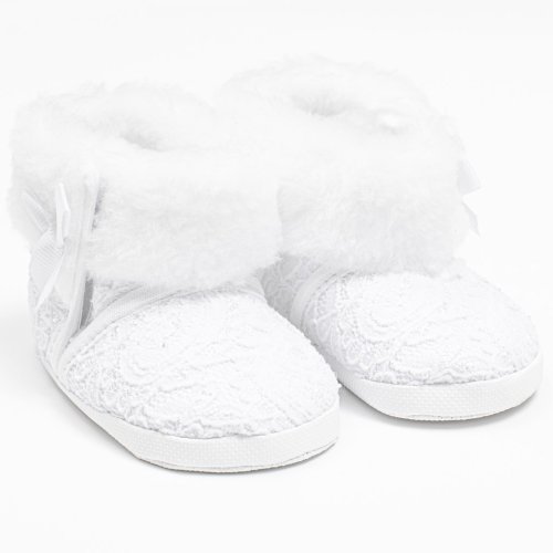Dojčenské zimné capáčky New Baby pre bábätká. Krásne, teplé čipkové čižmy na suchý zips. Vnútorná časť je vystlaná rúnovou pleteninou-100% polyester. Capáčky priliehajú k nožičke a majú široké vnútro, čo umožňuje voľný pohyb prstov a svalov. Výrobok nie je určený na chôdzu. Sú veľmi ľahké s tenkou syntetickou podrážkou. Zloženie: 100% polyester, rúnová pletenina-100% polyester. Podrážka: syntetický materiál PVC bez BPA. Dĺžka vnútornej stielky 11 cm. Určené pre deti 3-6 mesiacov. Dodávané v praktickej krabičke. Upozornenie: pod textilnou vložkou sa niekedy nachádza papierová vložka, ktorá drží tvar capáčky. Pred prvým použitím odstráňte túto papierovú vložku.